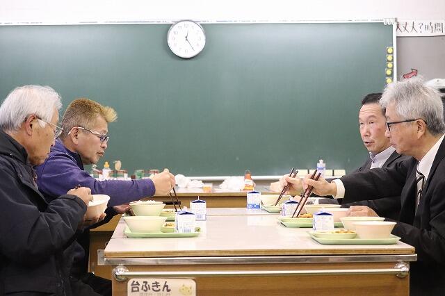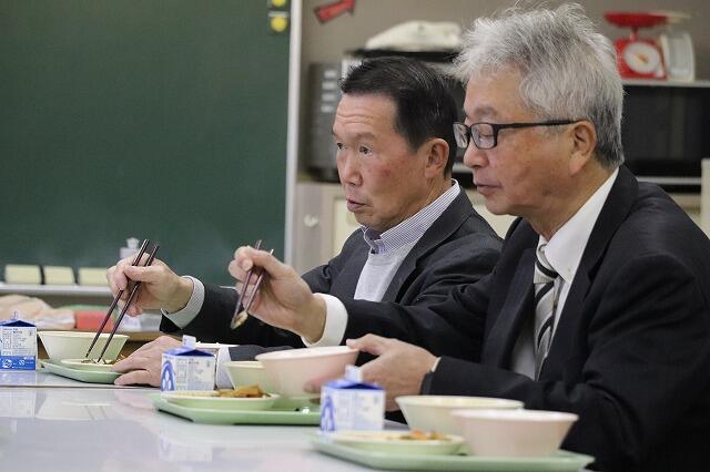 併せて、給食の試食会を行いました。本日の給食献立は「いわしの梅煮・くきわかめのピリ辛炒め・なめこ汁・ごはん・牛乳」でした。美味しい和食が、好評でした。
