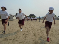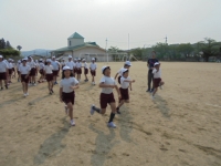 2016年5月20日 14時21分 運動会が終わると、上学年児童の陸上練習が始まります。朝の涼しい時間を利用して基礎体力づくりを行っていました。
