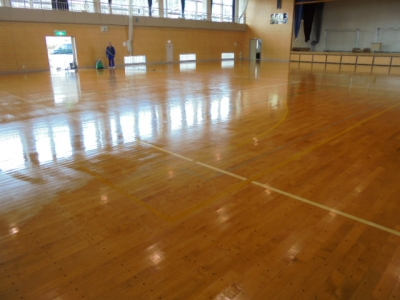 2016年3月11日 11時29分 ワックスがけをしました。とくに、体育館はプロの方にお願いし、ピカピカにしていただきました。