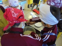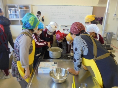 2016年2月4日 11時15分 JA新ふくしまの皆さんにご協力いただき、前回は5年生が米粉クレープを作りました(12月4日)が、今回は4年生が豆腐づくりにチャレンジしました。