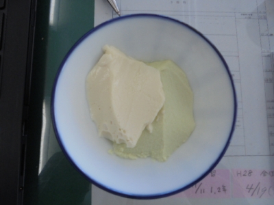 「きぬごし」と「あおばた」の2種類の完成です。二つとも大豆の味が際だつ、よいできだと思いました。