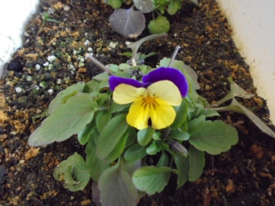 パンジーが小さな花をつけました。
