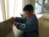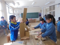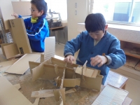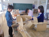 2016年1月21日 18時00分 朝の3年生は、ダンボールをいっぱい抱えて楽しそうでした。