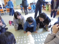 「こすりだし」でした。1年生が学校のいろんなものや、外の落ち葉などを拾ってきて、下に敷いてこすっていました。