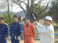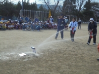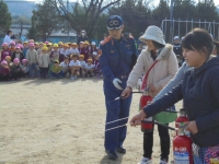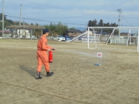 初期消火の訓練も行いました。消火器も使ってみないと、いざというとき使えません。ご家庭でも試してみてください。