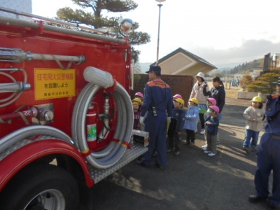 無事の避難の後に、消防署の方から火災から身を守ることを教えていただきました。