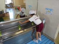 2015年9月28日 19時02分 平田小の子どもたちは、無言で一生懸命におそうじします。だれ一人お話ししないので掃除中は、とても静かです。