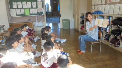 2015年9月29日 15時37分 読み聞かせのボランティアのお母さん方による恒例の、朝の読み聞かせがおこなわれました。