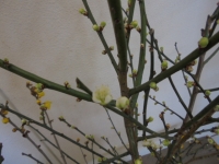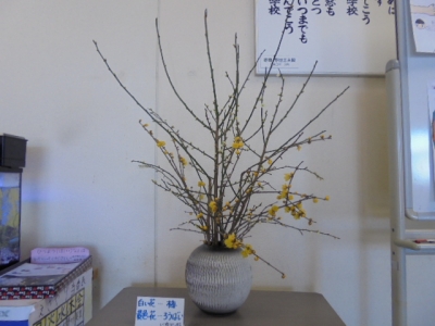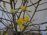 白い花が「梅」、黄色いのが「ろうばい」とのこと。玄関に飾ってみると、何やらいい香りが・・・。