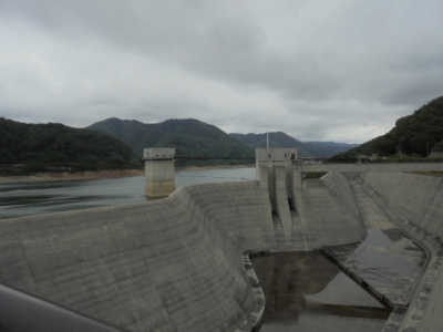 まずは、水をためるダムを見ました。ここは貯水池「もにわっ湖」と言うそうです。今年は、雪や雨が少なかったために、現在の水位は60%とのことです。ダムの面積は4.6㎢(東京ドーム100個分)。子どもたちはこの広さに驚いていました。