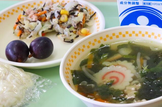 2023年9月15日 13時00分本日の給食は「だいすきふくしまの日・ひじきの日献立」で「塩ラーメン・ひじきとツナのサラダ・巨峰・牛乳」でした。太めのソフト麺とラーメンのかけ汁がよくあい、子供たちも口々に「美味しいです」と言っておりました。秋の味覚“ぶどう”も美味しい季節です。