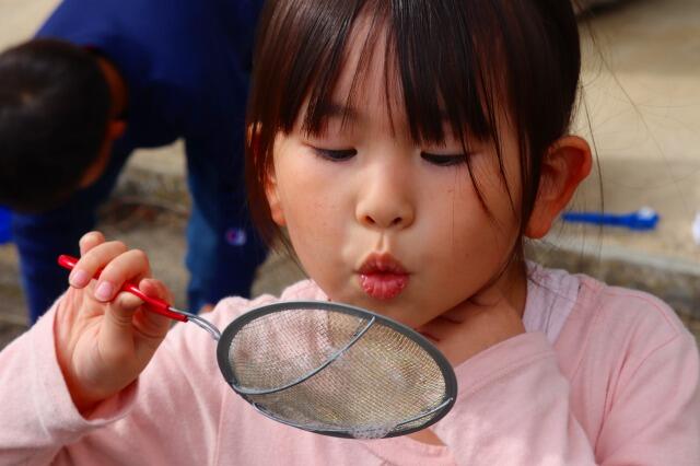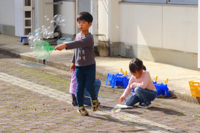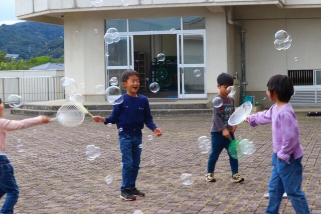 2023年10月16日 17時30分子供たちにとって身近な「シャボン玉」づくりの遊び。ストローやうちわの骨組み等でとばす道具を作り、道具に合わせてとばし方を工夫させ、本当に楽し気でした。「もっとたくさんつくるには」「大きなものをつくるには」…工夫次第でシャボン玉の大きさや形、われにくさなどが違うことに気付いたようです。シャボン玉で、子供たちの知的好奇心をくすぐり、感性を磨く…生活科の学びって、子供たちの育ちの大事な土台になるのだなあと実感しました。