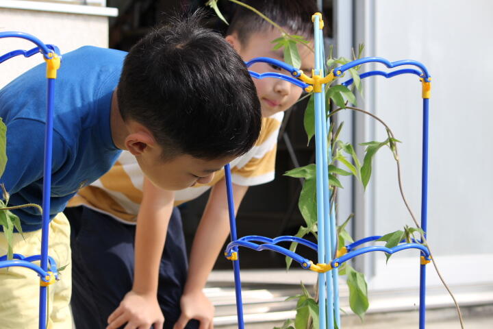 朝の時間、1年生の教室の外では、いろんな声が聞こえます。