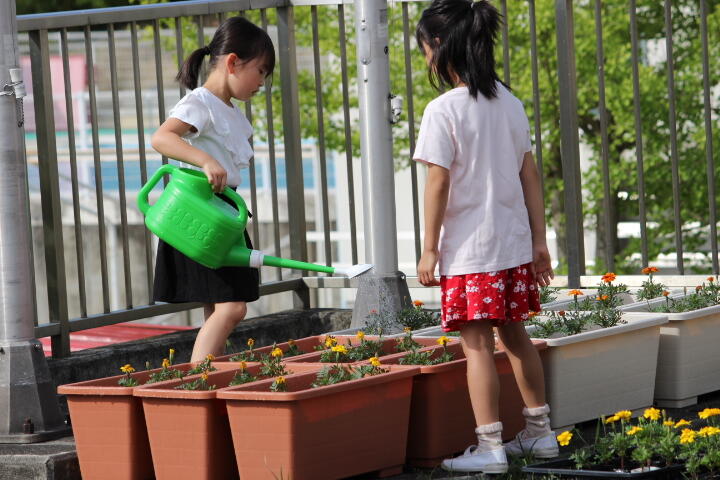 たっぷりの水をかけてもらって、花たちもよろこんでいるようですね。