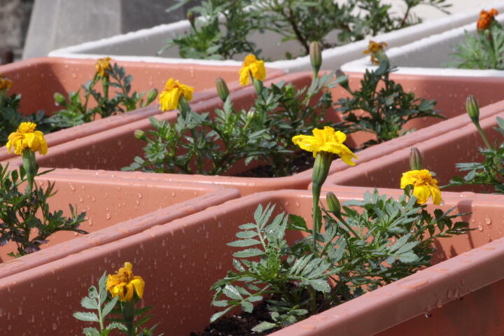 野菜にやって残った水は、技能主査が育ててくれているマリーゴールドにもかけくれました。