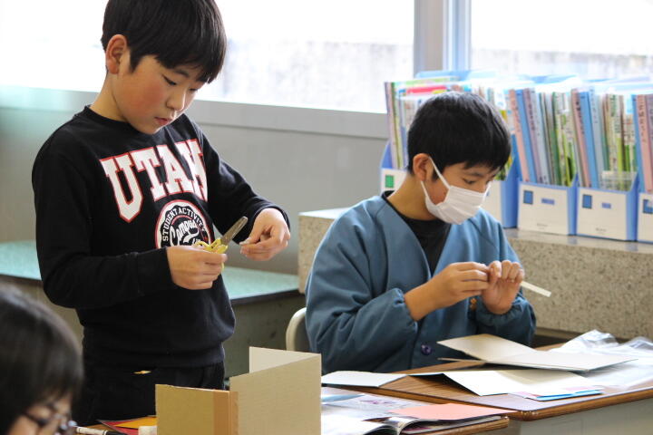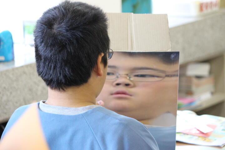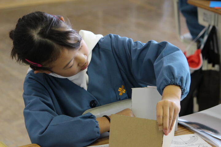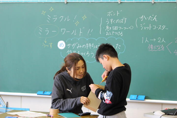 鏡の特徴を生かして、どんな楽しい世界がつくれるのか、いろいろと試しながら作業は進められます