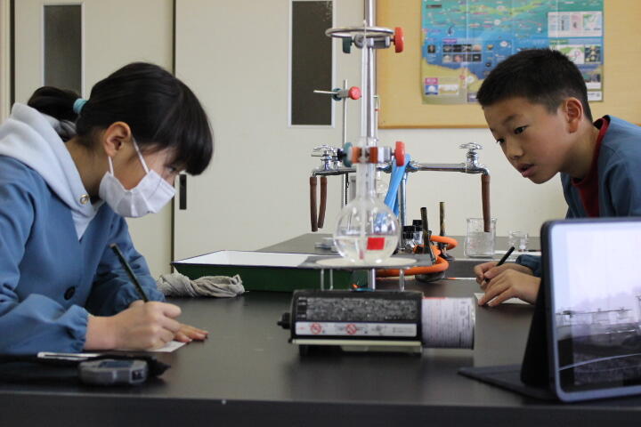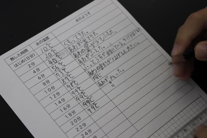 2分ごとの水の温度と水のようすの変化を観察・記録しています。