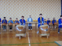 PTA会長様の話に続き、地域芸能である「小倉太鼓」の発表がありました。太鼓の音は、私たちの心の中に響き渡りました。