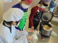 ごはんは、おにぎりにし、全校のみんなにも味見してもらいましょう。よし、おいしいよ。