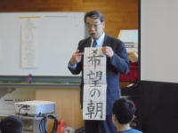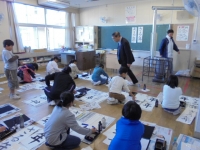 2時間で3~6年生全員が教えていただくという、タイトなスケジュールでしたが、書きぞめ作品をどう練習して書いたらいいのかポイントを教えていただきました。