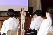 令和3年10月4日(月)、福島市出身のプロダンサー・振付師のRuu(ルウ)さんをお迎えして、2学年が講演会を行いました。「努力を続けていればチャンスはやってくる、全員にチャンスはある」… “負けず嫌い” とご自身を評するRuuさん。生徒たちは、悔しさをバネに闘い続けているRuuさんの姿に感銘を受けたようです。「努力して素敵な人生を!」というRuuさんのメッセージを胸に、将来の大きな夢をもって挑戦を続ける北信中生であってほしいです。(※福島市 中学生ドリームチャレンジモデル事業)