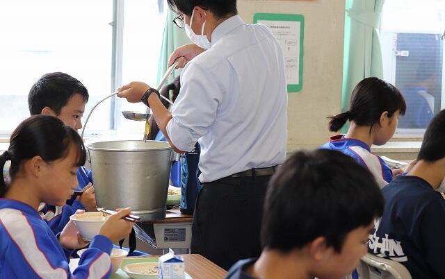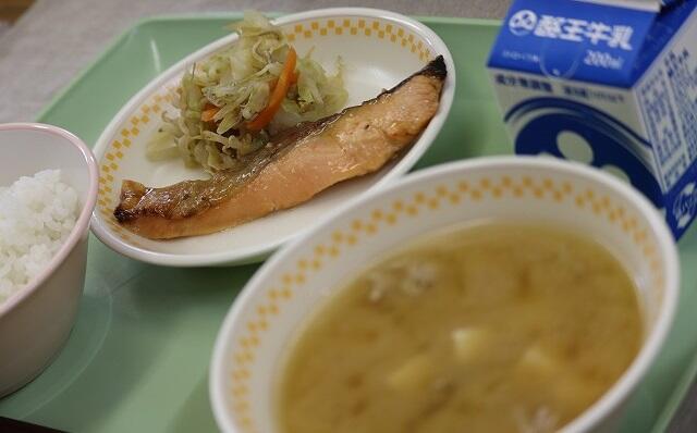 令和3年10月5日(火)の給食は、「福島県産の魚を食べよう・だいすきふくしまの日メニュー」で、メープルサーモン西京焼き・じゃこ入りおひたし・豚汁・牛乳でした。阿武隈川メープルサーモンは、カナダ原産のニジマスを養殖施設で孵化、育成したもので、脂がのって身がしまり、とても美味しくいただきました。