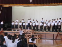 合唱コンクールリハーサル 2019年10月2日 09時16分 本日の各学年で合唱コンクールリハーサルを実施しています。 ステージへの入退場の仕方を確認したり、各クラスの合唱を聞いたりしています。 下の写真は、1年生のリハーサルの様子です。