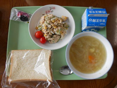 セルフツナサンド(食パン) 牛乳 キャベツとあさりのスープ ミニトマト(2ケ) 乾燥プルーン