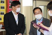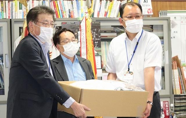 5月18日(月)、福島市北信学習センター利用団体連絡協議会会長 鴫原正道 様、北信学習センター館長 渡部和彦 様、同主任 宗像邦博 様が来校し、800枚の手作りマスク(全校生徒分)をご寄付くださいました。地域の皆様の善意に心から感謝申し上げます。