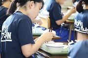 年に一度。〔七夕献立〕 2020年7月7日 14時00分 今日の出来事 本日の七夕献立は、あじフライ・わかめのピリ辛和え・七夕汁・七夕ゼリーでした。お吸い物には、星型にんじんの姿も! デザートまで付いて、大満足の給食です。