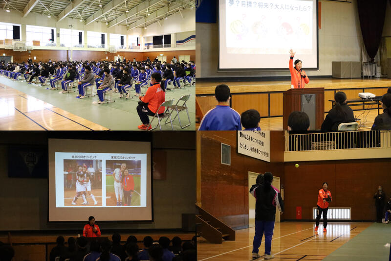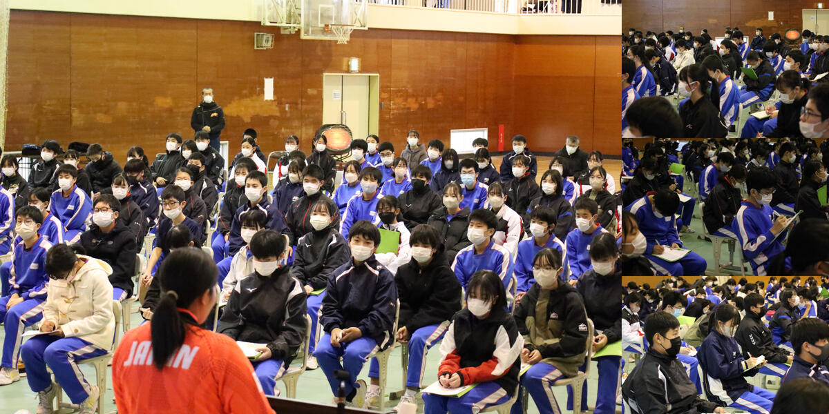 2022年12月7日 16時24分本日は、福島市の後援のもと、中学生ドリームチェレンジモデル事業「キャリア教育部門」~ソフトボール界のレジェンド 峰幸代さんに学びます~と題して2年生を対象として講演会を行いました。峰さんは、2008年北京五輪、2020年東京五輪で日本の2大会連続金メダル獲得した元日本代表です。