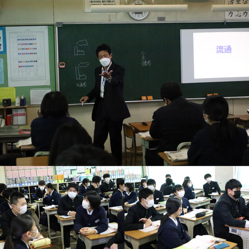 1組は社会の授業で、消費生活を支える流通について学んでいました。商品はどのように私たちの元に届くのか話し合っていました。