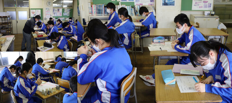 3組は家庭科の授業で、消費者トラブルを解決する方法について学んでいました。悪徳方法の手口と対策を話し合っていました。
