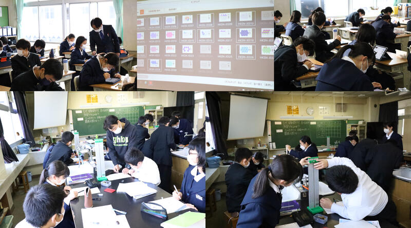 9組は数学の授業で、平面図形の回転移動について学んでいました。デジタル教科書で図形の移動を確認していました。デジタルで見ると移動は簡単に確認できるのだと感心しました。