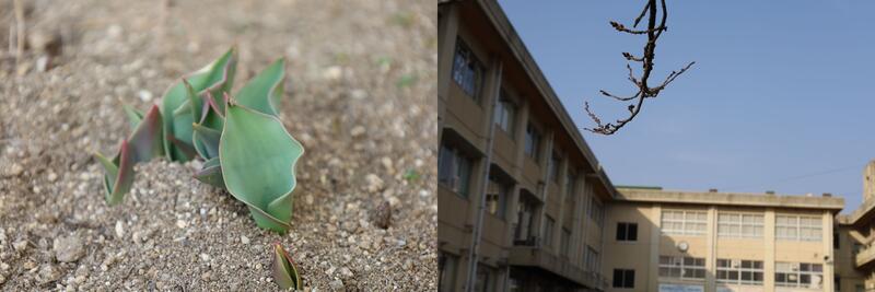 朝は、もう春という温かな気温でした。花壇のチューリップも葉を出してきました。桜のつぼみも周りの様子をみながら大きくなってきています。