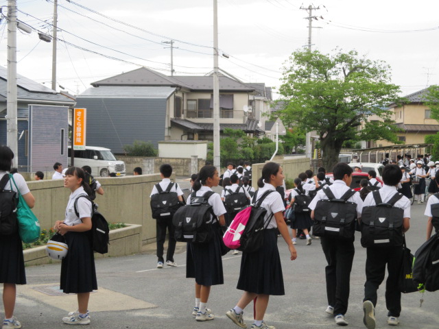 一斉下校 2018年7月13日 15時16分 本日は会議のため一斉下校でした。 安全にマナーを守って、下校するよう指導しています。 今後も交通安全については、徒歩通学、自転車通学ともに指導を継続していきます。
