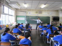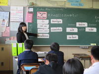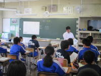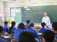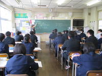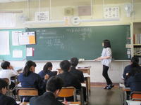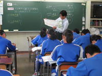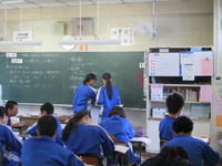 1年の社会では「世界の中での日本の位置」について学習をすすめていました。担当の教員が、白地図の前で生徒の既習事項を引き出しながら楽しく学習をしていました。