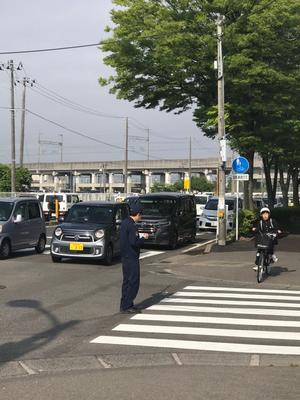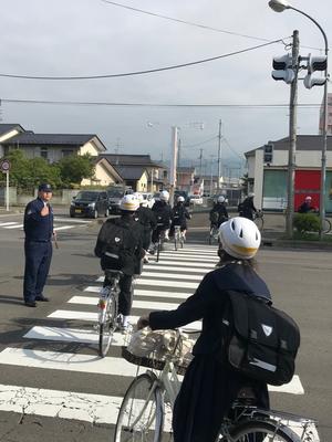 今週の朝、福島北警察署の方が交通指導に立ってくださっています。