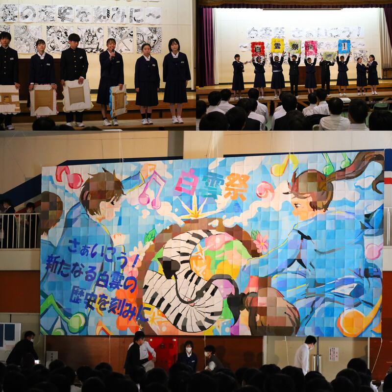 「さぁ 行こう!新たなる白雲の歴史を刻みに」というサブテーマのもと、4年ぶりに、全校生が体育館に集まり、白雲祭が始まりました。