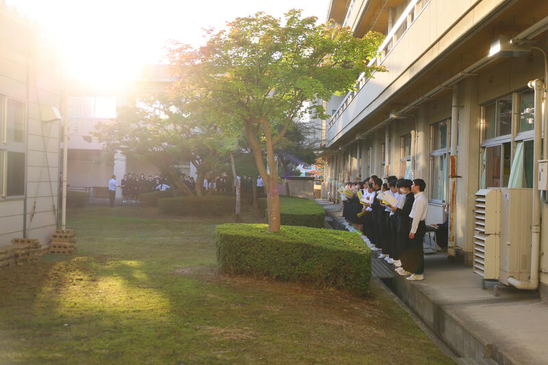 1日目が終わっても、白雲祭の熱が冷めません。3年生は中庭や教室で明日に向けて合唱練習を頑張っていました。中庭は各クラスの取り合いでした。