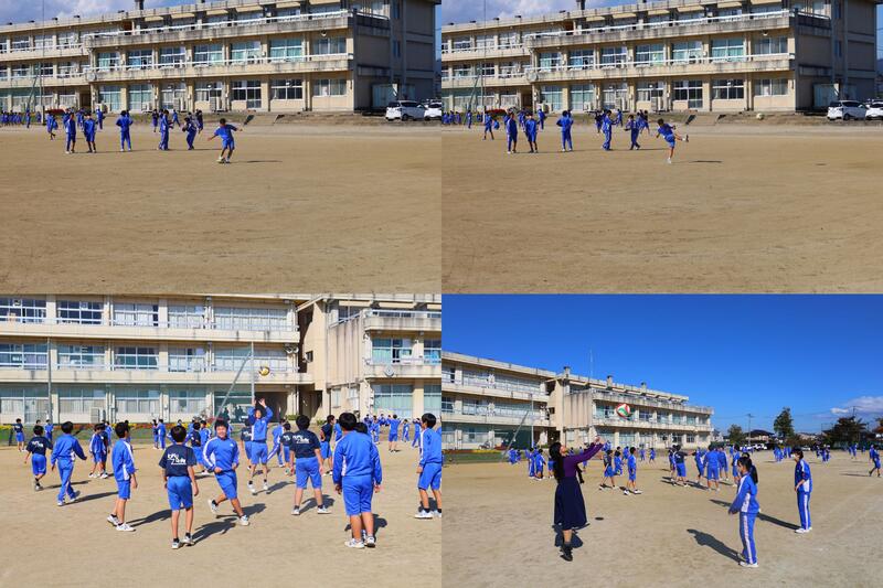 ALTのマイラさんも生徒と一緒にバレーボールを行っていました。