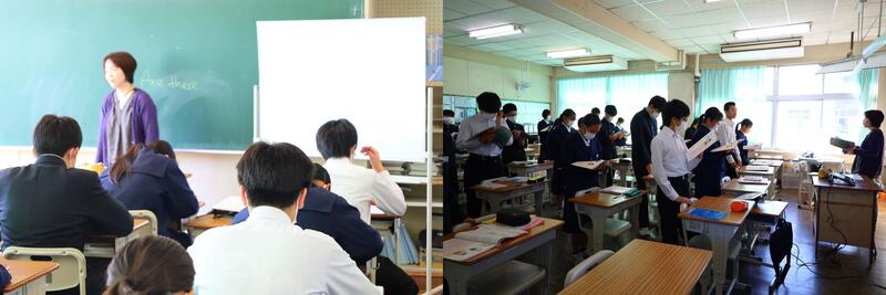 1組は英語の授業で、3人称の疑問文の作り方を確認していました。