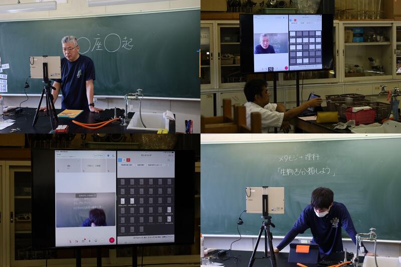 メタモジで出欠を確認してから、各学年で授業を行いました。1年生は理科の授業で、植物や生物の分類について学んでいました。