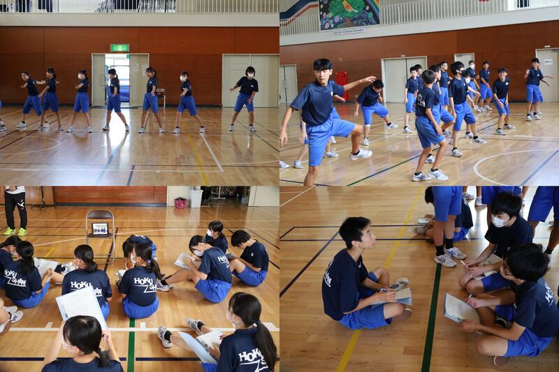 グループで踊った画像を確認し、不利がよかったことろや改善点を話し合っていました。