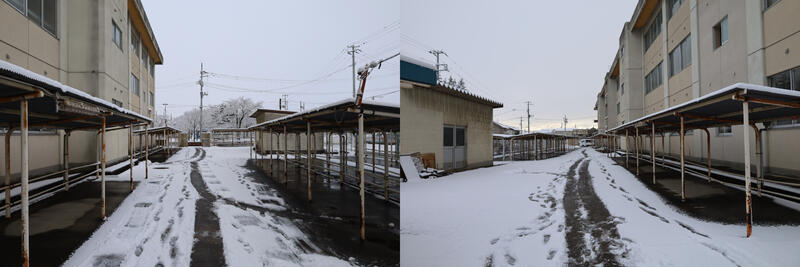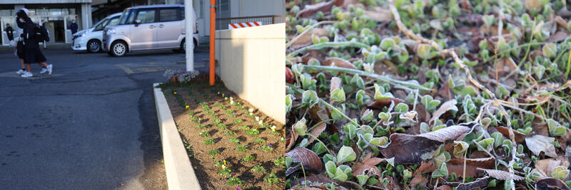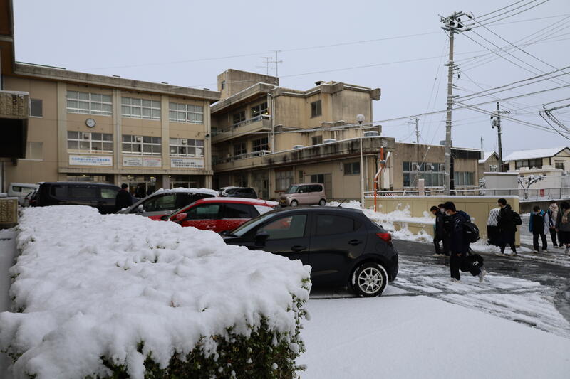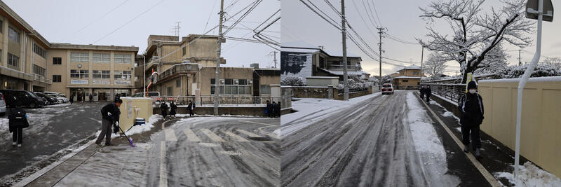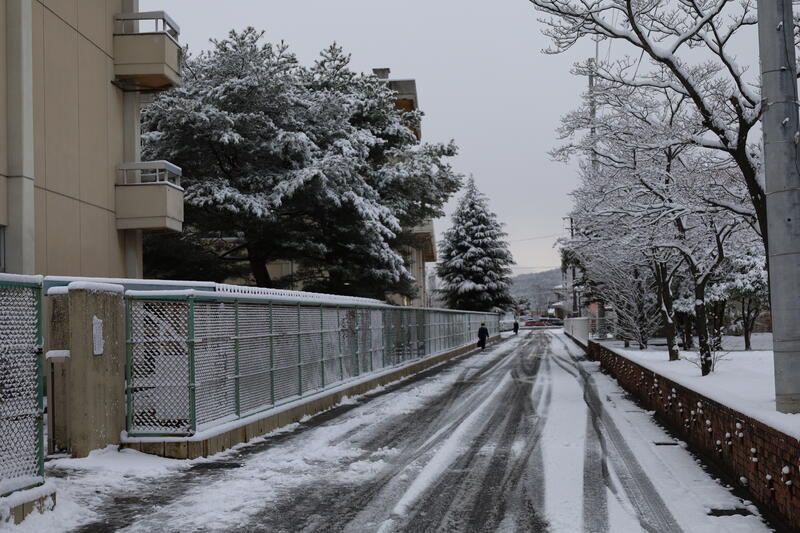 特に学校の北側の道路では路面凍結に注意が必要です。冬に通るときには十分注意してていただければと思います。