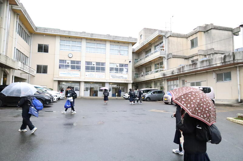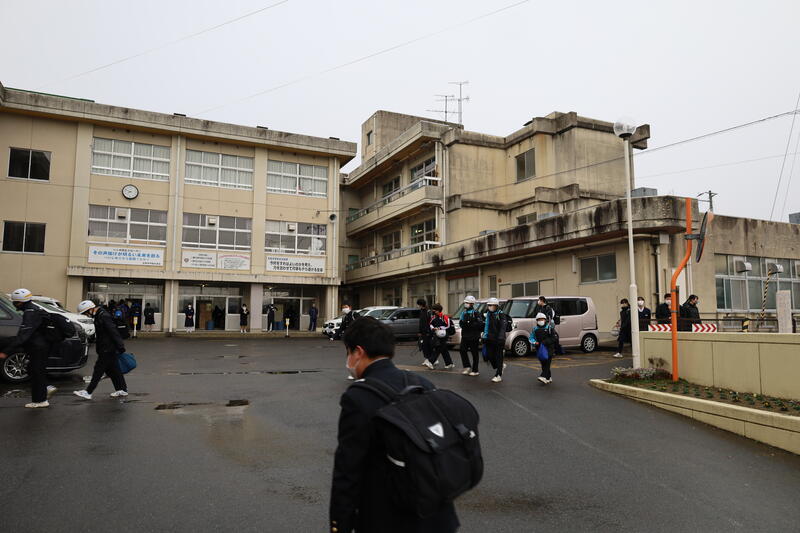 生徒は、安全のため徒歩で登校してきます。自転車の生徒も、安全のため自転車通学をせず登校しています。
