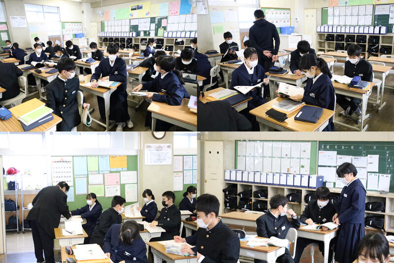 本日から、高校入試に向けての面接練習が始まりました。どのように答えるのか、どのようなポイントに気を付けていくのかなど昼休み、放課後を使って行っています。緊張した中でもしっかり答えられるように練習しています。4月からの、自分自身の大切な進路のために真剣に行っていました。
