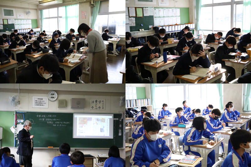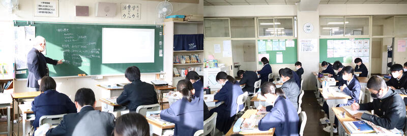 3組は英語の授業で、授業のはじめに単語のテストを行っていました。間違いやすいものを注意しながら確認していました。