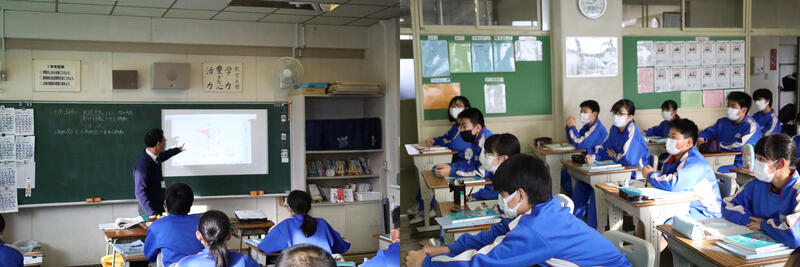 9組は数学の授業で、平面図形の回転移動について学んでいました。デジタル教科書で図形の移動を確認していました。デジタルで見ると移動は簡単に確認できるのだと感心しました。