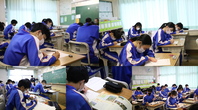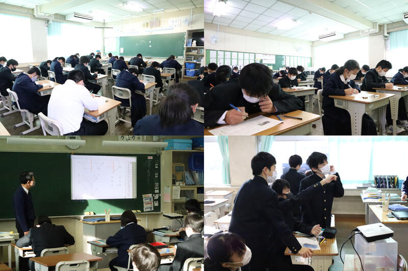 3組は数学の授業でたんげん単元テストを行っていました。角度を求める問題のほかに証明が出ていました。少し証明には慣れていたのでしょうか。